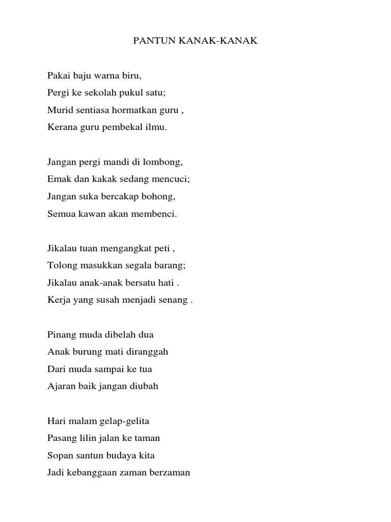 Doc Pantun Kanak Kanak Choo Ming Ding Academia Edu